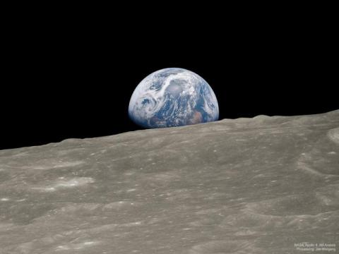 „Erdaufgang“: Bild der Erde wurde von während der NASA Mission „Apollo 8“ im Jahr 1968 fotografiert, Astronauten sahen, dass die Erde aufgeht, erstes farbiges Foto der Erde